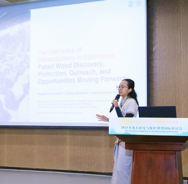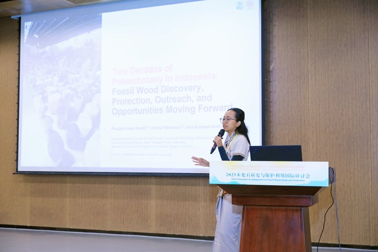 Our Co-founder, Secretary-General, and lead for Friends of Fossil Forests Indonesia Task Force, Puspita Insan Kamil, was honorably invited by Nanjing Institute of Geology and Palaeontology and the organizing committee of 2025 International Symposium on Fossil Wood Studies and Protection to talk about her experiences in utilizing the science of Psychology and creative educational approaches for protecting the heritage of Indonesian Fossil Wood.