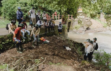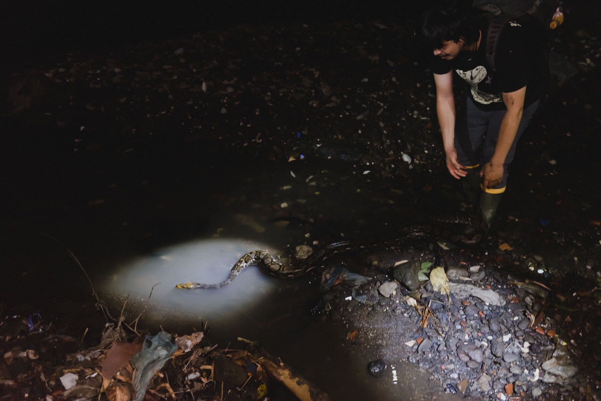Rivers are vital habitats for humans and other animals. Historically, the River Valley Civilization, or River Valley Civilization that began around 4000-3100 BC in places such as the Nile and Tigris, marked the beginning of the Neolithic or Young Stone Age, in which humans began to manipulate and modify their environment to cultivate crops, and abandoned the style of migratory life and hunting. To this day, we see big cities living along the river's lines - like New York (Hudson), Paris (Seine), London (Thames), Bangkok (Chao Praya), and Denpasar (Ayung River), because it would be difficult to live without water. With a growing human population and a high demand for rivers, we share this valuable resource with other species, such as reptiles and amphibians. Their role for the ecosystem is diverse, one of which is controlling rats and mosquitoes. Unfortunately, one of the direct interactions between us and them is the contribution of our waste being carried away, or deposited on the riverbanks. Understanding and sharing how to understand the impact of our waste in the riverbank to the lives of many species will improve our collective knowledge in the dynamics of riparian ecosystem, and in the long run helps us to formulate best strategy of river restoration.