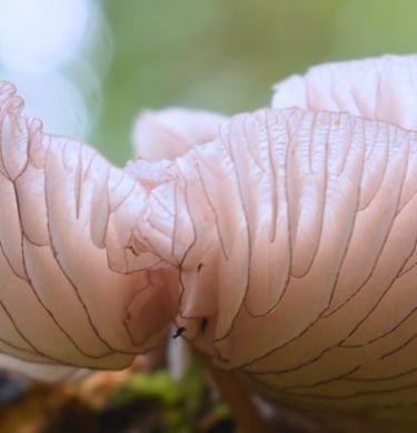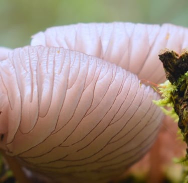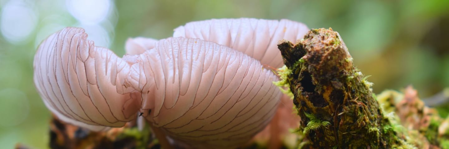 is a rare sight in rainforests. It is found on both living and dead trees, and its species name, rosea, refers to its rosy to soft pink umbrella-shaped caps.