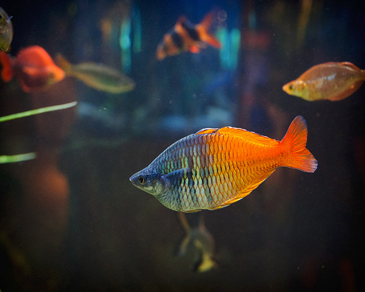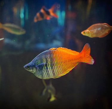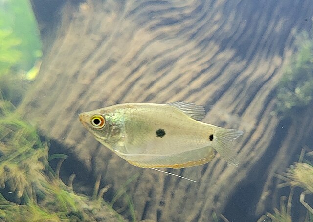 inhabits lush swamps and marshes, where plants grow in plenty. It has a special organ near its gills that helps it inhale oxygen directly from air.