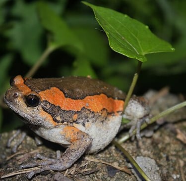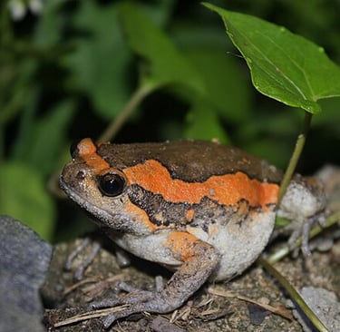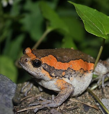 is an avid digger with stout, rubbery body. It burrows in the soil during the day and produce loud, baritone calls after heavy rains.