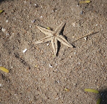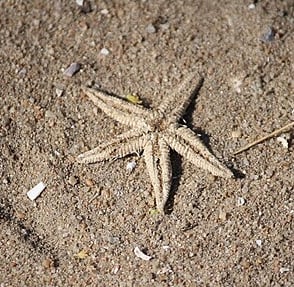 is a predatory, fast-moving starfish that burrows and hunts in sand beds. It swallows tiny mollusks whole, shells and all - before ejecting the empty shells intact.