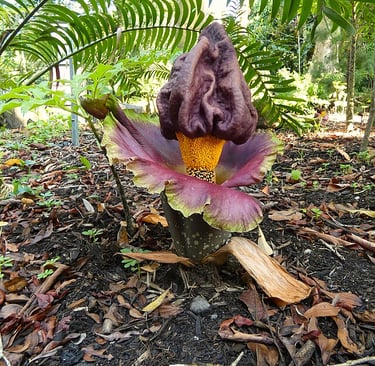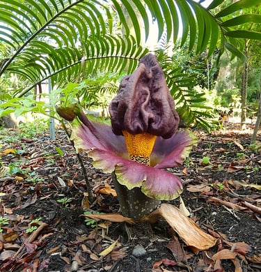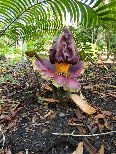 in the forest is a strange sight to behold. A more modest relative of the Sumatran titan arum, its massive tuber is edible.