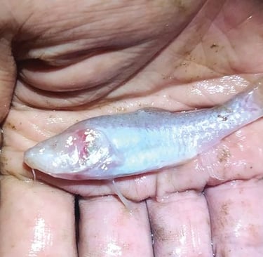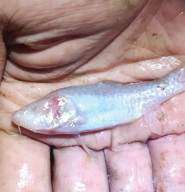 is a new species described in 2025. Its pale and eyeless body is perfectly adapted to life in caverns and it is surprisingly related to the common goldfish.