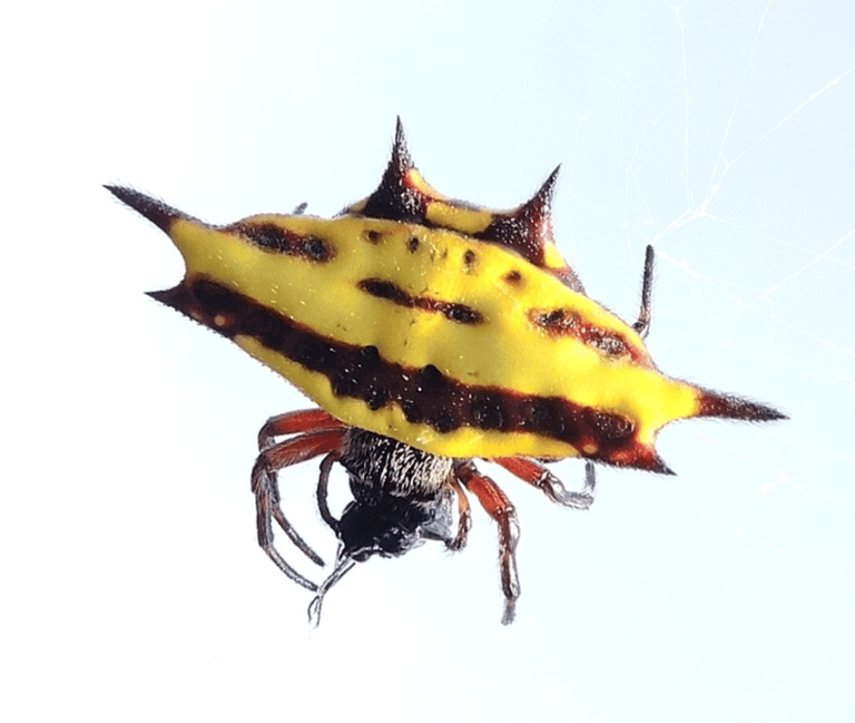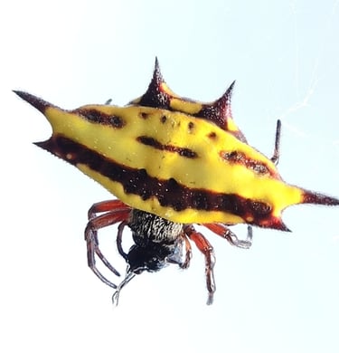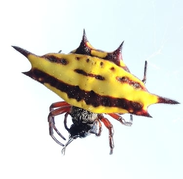 belongs to a group of ornate spiders, most diverse in Asia. The females are strikingly colored and bear elaborate spines on their bodies.