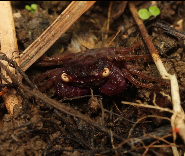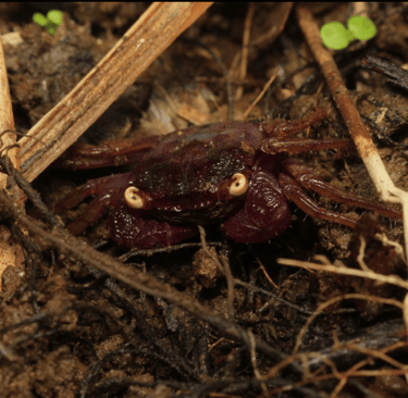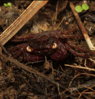 is a tiny crab endemic to West Javan forest streams and ponds. Its 'vampire' moniker came from its eerie, neon yellow eyes.