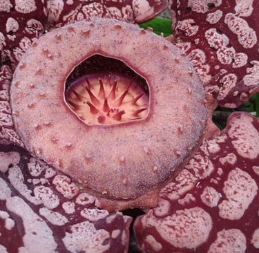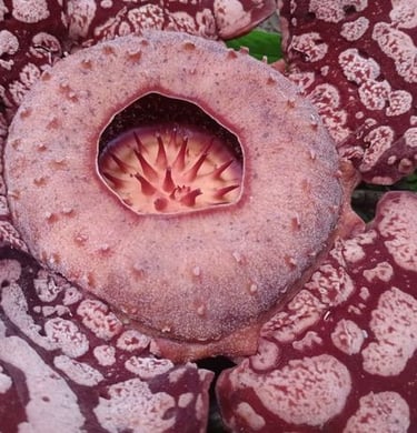 smaller than Rafflesia arnoldi, and is distinguished by its blotchy white spots. It is threatened by harvests and Sumatra's brutal deforestation, and has only been rediscovered in 2025.