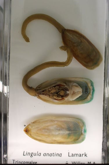 is not a clam, and not even a mollusk. Instead, it is a brachiopod, clam-like animals that have persisted on Earth, long before the first land animals evolved.