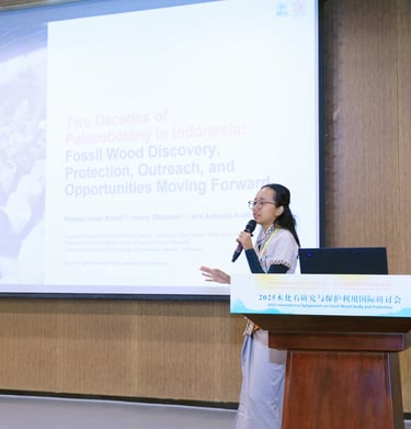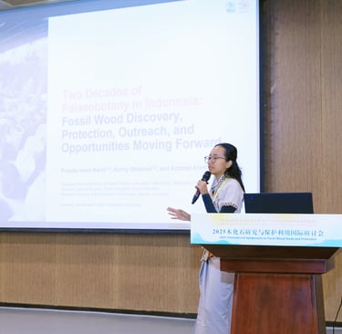 Our Co-founder, Secretary-General, and lead for Friends of Fossil Forests Indonesia Task Force, Puspita Insan Kamil, was honorably invited by Nanjing Institute of Geology and Palaeontology and the organizing committee of 2025 International Symposium on Fossil Wood Studies and Protection to talk about her experiences in utilizing the science of Psychology and creative educational approaches for protecting the heritage of Indonesian Fossil Wood.